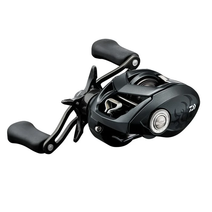 It features an aluminum frame, aluminum handle sideplate, and is extremely palmable. With regards to gearing, it also contains Daiwa’s Hyper Drive Design™ gearing system for very smooth cranking and fluid-like rotation.