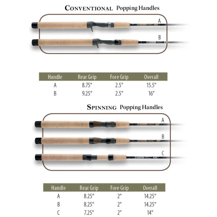 G. Loomis Classic Saltwater Popping Spinning Rods have soft tips so the bait will land quietly, even on longer casts. They come in 2 lengths and various powers for fishing spoons, bucktails or surface lures. Very lightweight, these are powerful rods that are capable of handling large fish, including small tarpon or bigger snook. All rods feature premium “A” grade cork handles, Fuji reel seats, and Fuji guides with oversized I.D.’s to allow for heavy knots and shock tippets common when fishing in saltwater. There are 8 1-piece and two 2-piece spinning models that will meet any angler’s needs. Made in the USA. Limited Lifetime Warranty included.