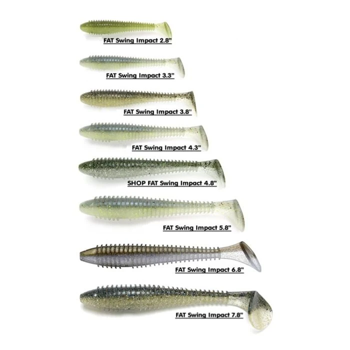 - The 3.3″ Keitech FAT Swing Impact has 7 baits per blister pack.