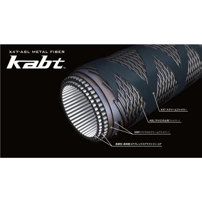 •   kabtâ„¢ (p. ‘kabutoh’): The astonishing tensile strength and tenacious resilience of the kabt‘s shape-memory metal microfibers are woven into a layered, multi-axis arrangement that reinforces the butt-section of each blank, delivering a superior power-to-weight ratio and more decisive lifting-power and control.