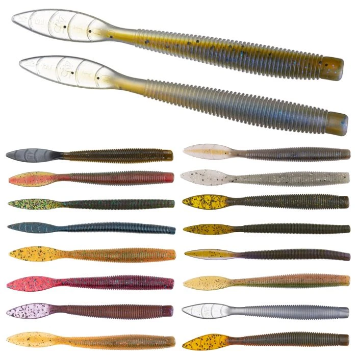 The Quiver 4.5 and 6.5 is a straight worm that is designed specifically for the two hottest bass fishing techniques- the Neko rig and the Tokyo rig. Taking an extended look of the very popular Ned Bomb, the super soft, ribbed body has a blunted head on the front for inserting Neko weights and sturdy rigging on the Tokyo rig. The back of the Quiver has a thin beaver like tail that quivers with the slightest touch and bass can’t resist. The Quiver is exactly what anglers need to learn and master the Neko rig and Tokyo rig with a finesse touch.