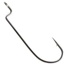 Offset worm hooks, with a worm-holding 90-degree bend shoulder. Preferred by many anglers for straight and easy rigging of plastic worms. Features include Cutting Pointâ„¢ and black chrome finish.